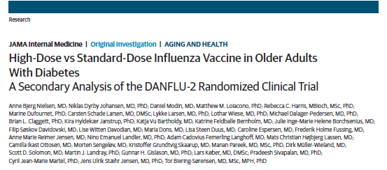 英文題目:High-Dose vs Standard-Dose Influenza Vaccine in Older Adults With Diabetes. A Secondary Analysis of the DANFLU-2 Randomized Clinical Trial
